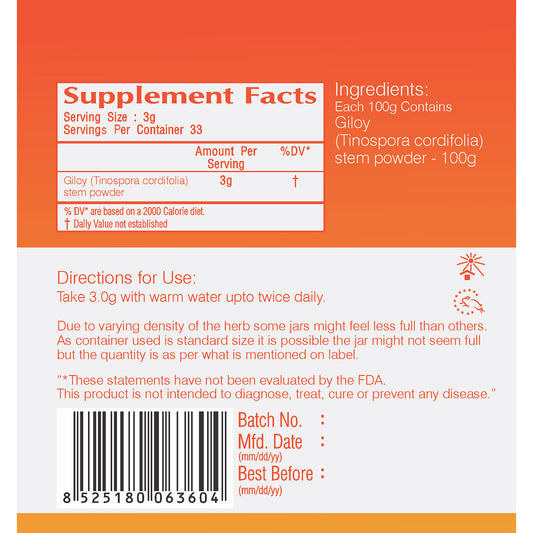 Vedic Giloy/Guduchi Powder | Healthy Liver and Immune Support