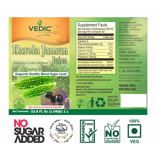 Vedic Karela Jamun Juice 1L | Supports Healthy Blood Sugar Level