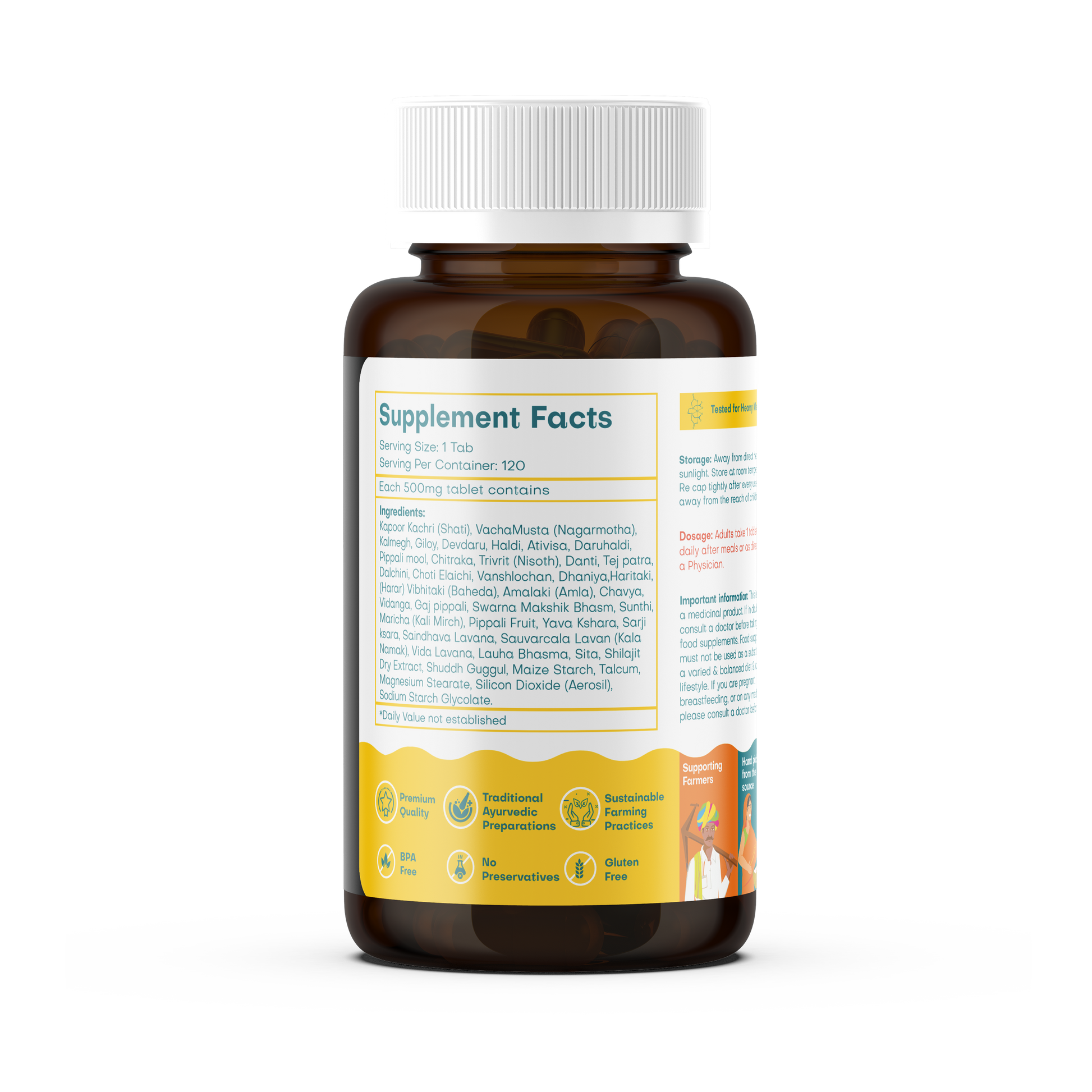 Rooted in ancient Ayurvedic wisdom, Chandraprabha Vati is a renowned herbal formulation used for centuries to promote urinary wellness, detoxification, and overall vitality. Infused with nature’s best ingredients, including Shilajit, Guggulu, Haritaki, and Triphala, these tablets are designed to rejuvenate, purify, and restore balance to your body. Experience the purity of Ayurveda in every dose.